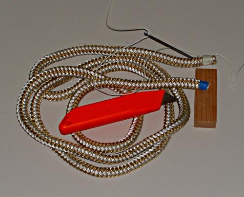 Pull out the core starting 6 to 8 inches above the stopper knot. Use a small fid to gently pull the core out. The fid is homemade from a plain hardware store awl. |