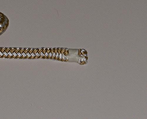 The bitter end tucked back inside itself. This give a nice end that is easy on the hands with a small lump that you can feel just before the line pulls out of your fingers. |