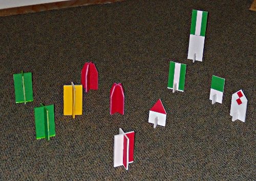 Patterns for Aids to Navigation Class Aids (pdf 37kb) – Patterns for both color and black & white printers with full instructions. Glue patterns to 1/4 inch foam board.