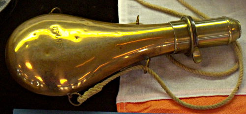 Powder Flask for a Lyle Gun. The flask dispensed one ounce of Black Powder with each measure. The Lyle Gun used 1 to 8 ounces of powder for each shot.