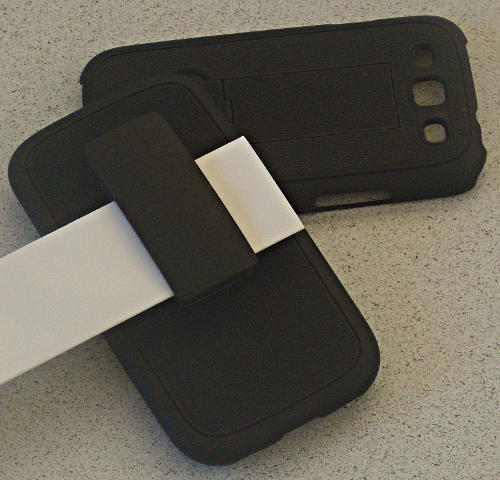 Talking to the salesman he pointed out a carrier that clipped on the cell-Phone and had a clip for a pocket or belt. When I looked at the two piece carrier, the part that clips onto the cell-Phone itself had an area that I thought I could drill a pair of holes in and attach a piece of waxed whipping twine that could be used to attach to a neck lanyard.