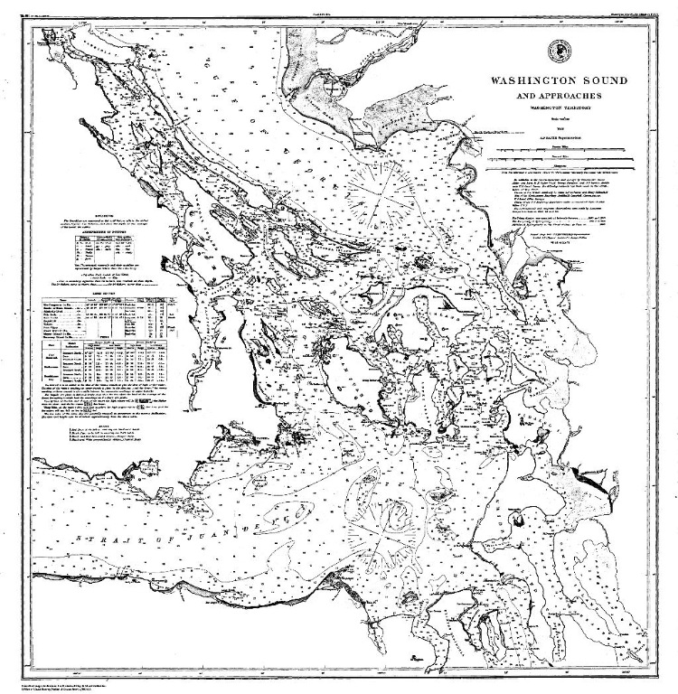 NOAA’s Historic Charts web site lets visitors search for charts by name or area on a map. I clicked on Alki Point in West Seattle and they listed almost 500 charts!
