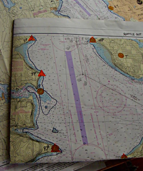 The paper charts had the Aids to Navigation highlighted so they could be easily found on the chart. There was also a heavy black line around the edge of the water marking where the Healy should not go.
