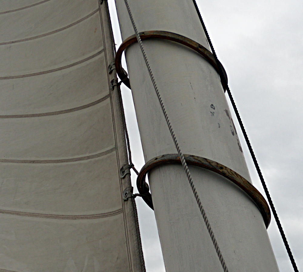 Hoops are used to attach the sail to the mast. The masts on America are quite large.