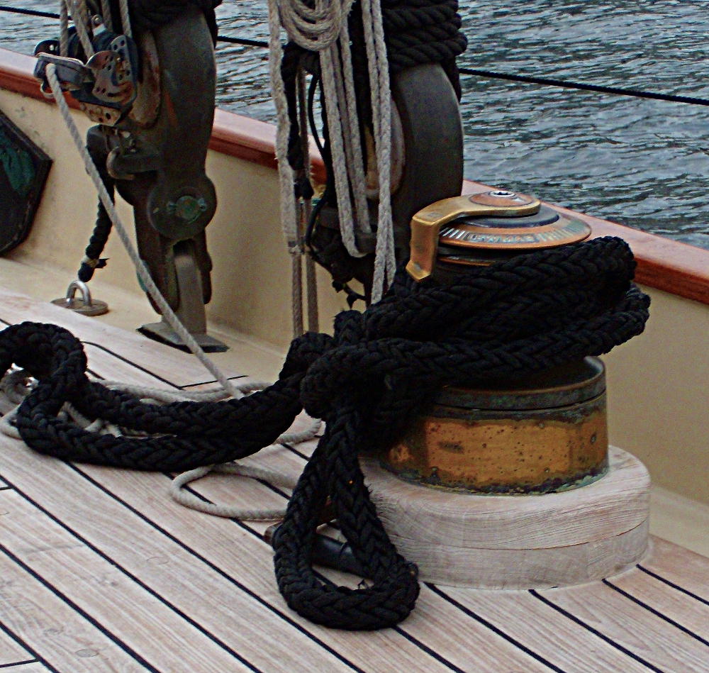The bow line ready for use, the bitter end is secured with a Towboat Hitch