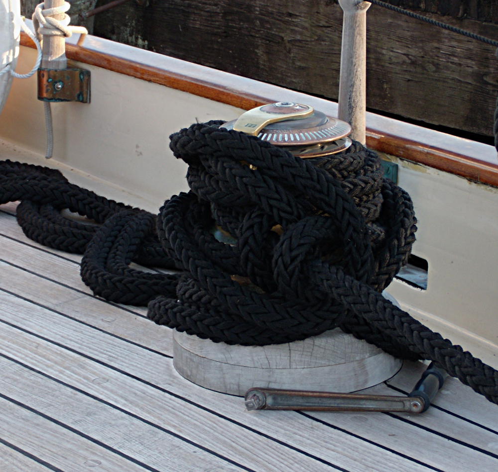 Hidden in what looks like a jumble is the bow line secured with a Towboat Hitch