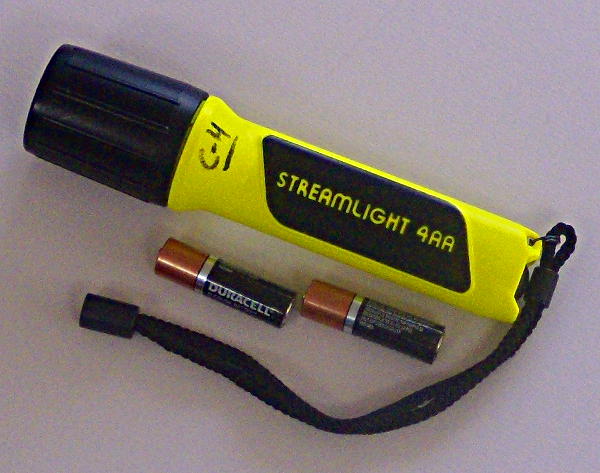 I picked Streamlight Lights because I have been using them for many years and been quite happy with them, some friends have gotten Streamlight Lights after seeing and using mine. The lights I have all use easily available batteries with most of the lights using AA batteries. This is to simplify the keeping of spares, the good old “one size fits all” theory which also includes the GPS batteries & the backup batteries for my handheld VHF radio. I also like the industrial look of the lights.