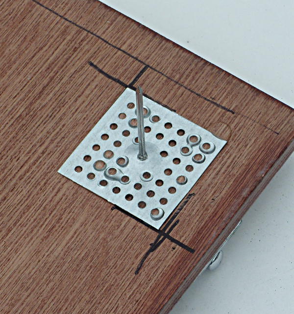Attach the steel fastener plate to the panel, use nails, screws epoxy etc. I used epoxy.